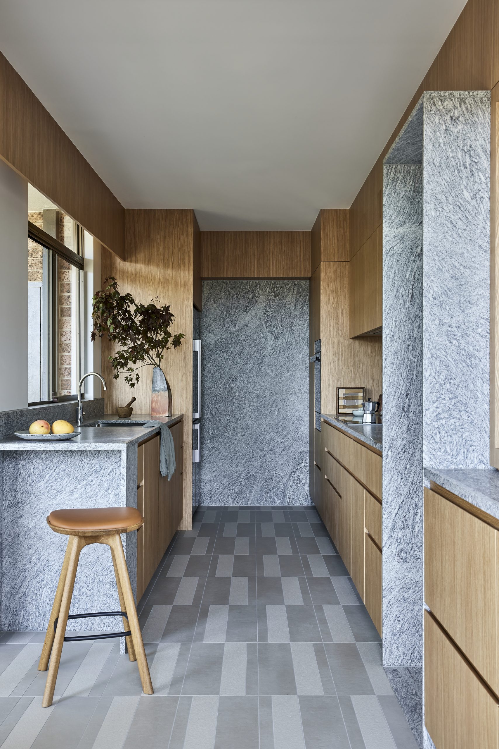 A renovation steeped in memory and respect, this Double Bay apartment by Architect George was originally built as a display suite for a 1970s residential block on heritage-listed grounds – and has been home to the same owners ever since. Rather than reimagining the space, the brief was to heighten it – opening the plan, restoring sightlines to leafy garden views, and drawing material cues directly from the apartment’s original palette. Briggs Veneers’ Rift Oak sits naturally within this philosophy, its clean linear grain a quiet nod to the warmth and character the owners have always called home.